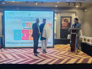 जेपी यूनिवर्सिटी ऑफ इंफॉर्मेशन टेक्नोलॉजी (JUIT), वाकनाघाट ने 27 अप्रैल 2025 को कुरुक्षेत्र, हरियाणा में एक परिवर्तनकारी STEM शिक्षावार्ता और प्रिंसिपल मीट का आयोजन किया। इस प्रभावशाली कार्यक्रम नेभारत में STEM शिक्षा के भविष्य के बारे में व्यावहारिक बातचीत में शामिलहोने के लिए अग्रणी स्कूल प्रिंसिपलों, शिक्षकों और शिक्षा सेवा प्रदाताओंको एक साथ लाया। कार्यक्रम की शुरुआत प्रोफेसर तीर्थ राज सिंह केगर्मजोशी भरे स्वागत भाषण से हुई और उसके बाद JUIT के