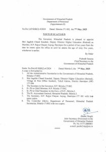 जगदीश चंद कौशल की हिमाचल प्रदेश राज्य चयन आयोग के सदस्य पद पर नियुक्ति
