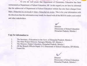 डायरेक्टर एलिमेंट्री एजुकेशन शिमला की जगह अब डायरेक्टर स्कूल एजुकेशन को लेकर वेबसाइट में बदलाव हुआ है।