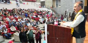 मुख्यमंत्री ने कहा कि उन्होंने सरकारी स्कूल में शिक्षा ग्रहण की और उनका एक साधारण परिवार से सम्बंध है। ऐसे ही सामान्य परिवेश से निकलकर आज उन्हें राज्य की सेवा का अवसर मिला है। मुख्यमंत्री बनने के समय राज्य पर 75 हजार करोड़ रुपये के कर्ज और कर्मचारियों की देनदारी के 10 हजार करोड़ का बोझ था। प्रदेश को कर्ज मुक्त करने के लिए प्रदेश सरकार ‘व्यवस्था परिवर्तन’ का ध्येय मानकर कार्य कर रही है।