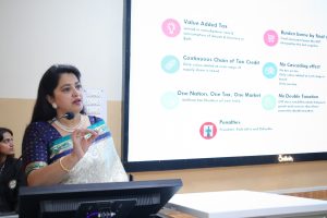 अपने प्रेरणादायक संबोधन में श्रीमती ठाकुर ने जीएसटी को भारत की अर्थव्यवस्था के लिए एक महत्वपूर्ण कर सुधार बताते हुए इसके लाभों एवं व्यवहारिक पहलुओं पर प्रकाश डाला। साथ ही उन्होंने महिला सशक्तिकरण के सामाजिक, शैक्षिक एवं आर्थिक महत्व को रेखांकित करते हुए छात्राओं से आग्रह किया कि वे शिक्षा, करियर और नेतृत्व के क्षेत्र में आत्मनिर्भर बनें तथा समाज के विकास में सक्रिय योगदान दें।