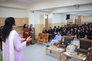 कार्यक्रम में वाणिज्य विभाग की बड़ी संख्या में छात्राओं ने उत्साहपूर्वक भाग लिया और विशिष्ट अतिथि से कई जिज्ञासाएँ साझा कीं। छात्राओं ने कहा कि यह व्याख्यान न केवल शैक्षिक दृष्टि से उपयोगी रहा बल्कि व्यक्तिगत और सामाजिक स्तर पर भी उन्हें प्रोत्साहित करने वाला सिद्ध हुआ।कार्यक्रम का समापन राष्ट्रगान के साथ किया