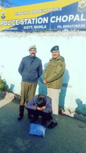 दिनांक 09.02.2026 को थाना प्रभारी चौपाल उप निरीक्षक अम्बी लाल, आरक्षी अभिषेक एवं एचएचजी संजीव कुमार पुलिस टीम के साथ झिकनीपुल, लानी, बमटा तथा आसपास के क्षेत्रों में नियमित गश्त पर थे। गश्त के दौरान पुलिस टीम ने एक व्यक्ति के कब्जे से 1.811 किलोग्राम चरस बरामद की।