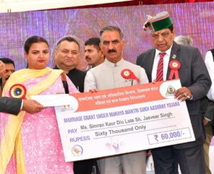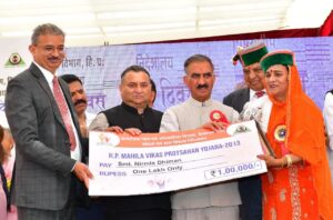 उन्होंने हिमाचल प्रदेश महिला विकास प्रोत्साहन योजना के तहत सोलन जिला की शांति जैसवाल, बिलासपुर जिला की निर्मला धीमान, कांगड़ा जिला के इंदौरा की गृहिणी स्वयं स्वरोजगार संघ तथा ऊना जिला की निशू लता को उत्कृष्ट कार्यों के लिए सम्मानित किया और उन्हें एक-एक लाख रुपये प्रदान किये।