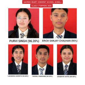सेक्रेड हार्ट कॉन्वेंट स्कूल, ढली, शिमला को यह बताते हुए अत्यंत हर्ष हो रहा है कि कक्षा दसवीं के वार्षिक परीक्षा परिणाम इस वर्ष अत्यंत उत्कृष्ट रहे हैं। विद्यालय के विद्यार्थियों ने न केवल शैक्षणिक क्षेत्र में उच्च अंक प्राप्त किए हैं, बल्कि अनुशासन, परिश्रम एवं समर्पण का भी उत्कृष्ट उदाहरण प्रस्तुत किया है।