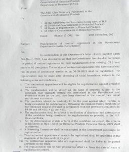 30 सितंबर 2021 से 2 वर्ष का कार्यकाल पूर्ण कर चुके शिक्षक और अन्य कार्य कर्मचारी होंगे नियमित